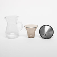 キントーのコーヒージャグセットです。 セット内容はジャグ、ステンレスフィルター、ホルダー。付属のホルダーは使用後のフィルター置きにもなります。また、ホルダーにはコーヒー豆を量る目安となる目盛りが付いています。 パーツをす・・・
